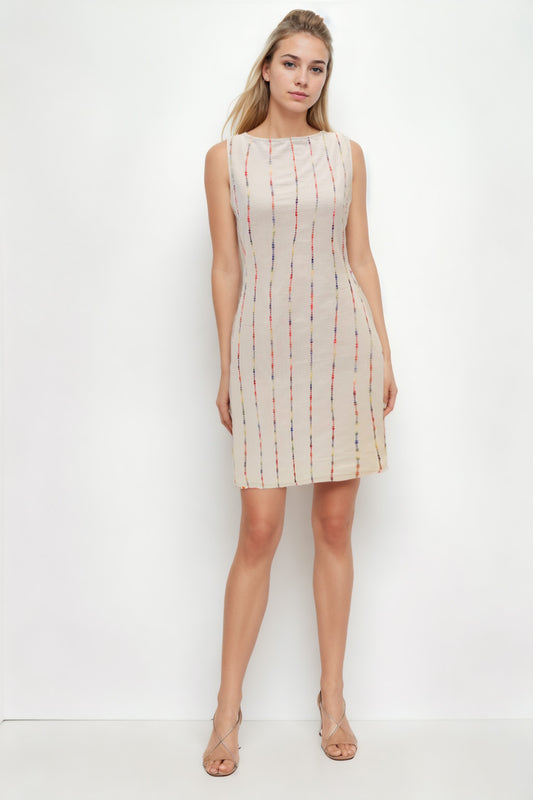 SLEEVELESS LINEN DRESS WITH FLOWER PATTERN