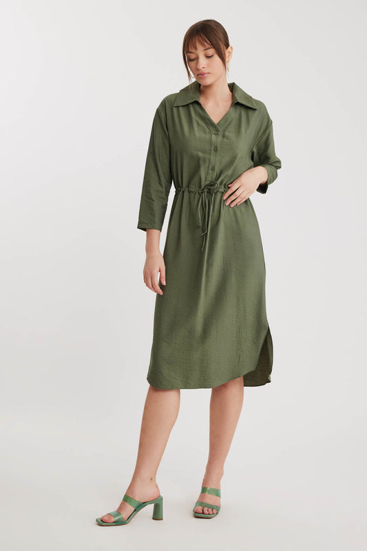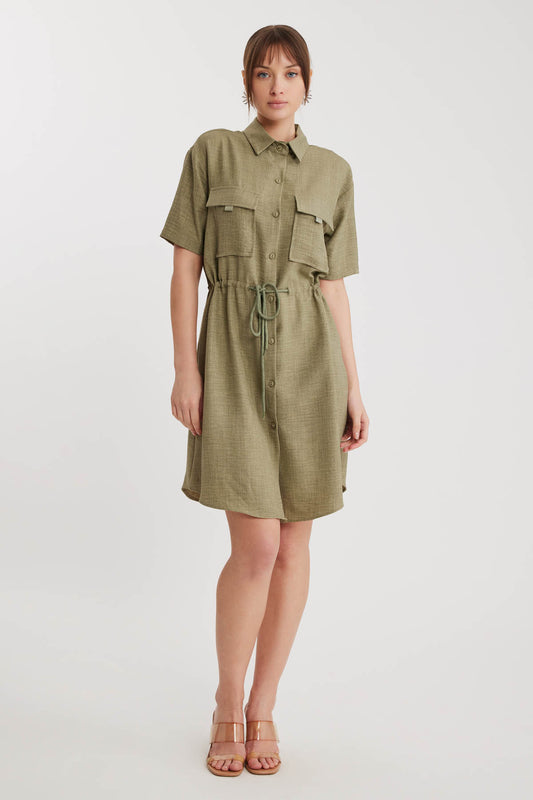 DRESS WITH BELT-BENT CRINKLE BUTTON