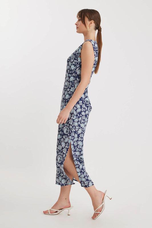 CLASSIC PATTERNED SIDE LONG DRESS WITH SPLIT