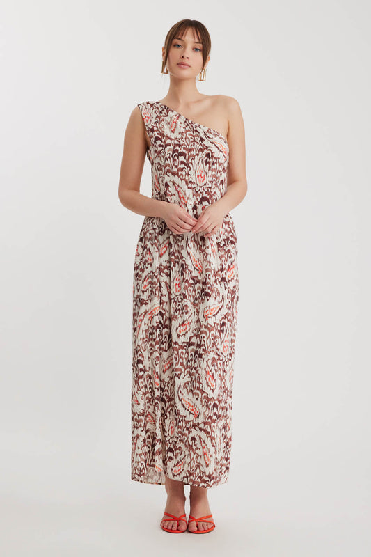 ELEGANT PATTERNED ONE-SHOULDER LONG DRESS