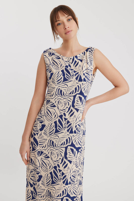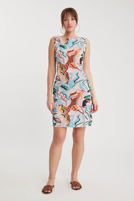 SLEEVELESS DRESS WITH AUTUMN PATTERN