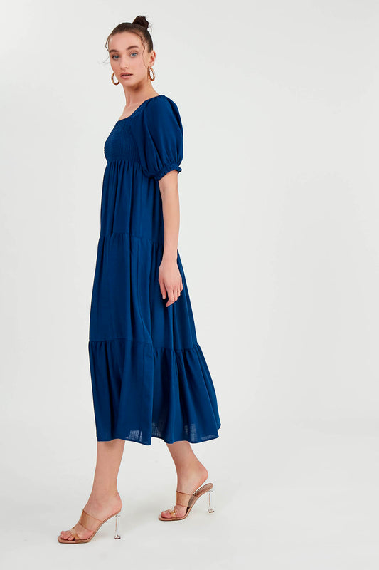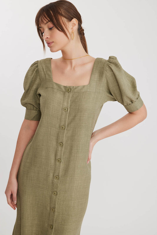 SHORT SLEEVE DRESS WITH SQUARE COLLAR FRONT BUTTON