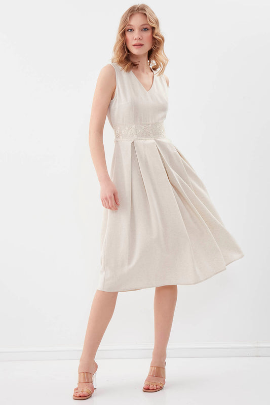 SLEEVELESS DRESS WITH WAIST-STRAPPED FRONT