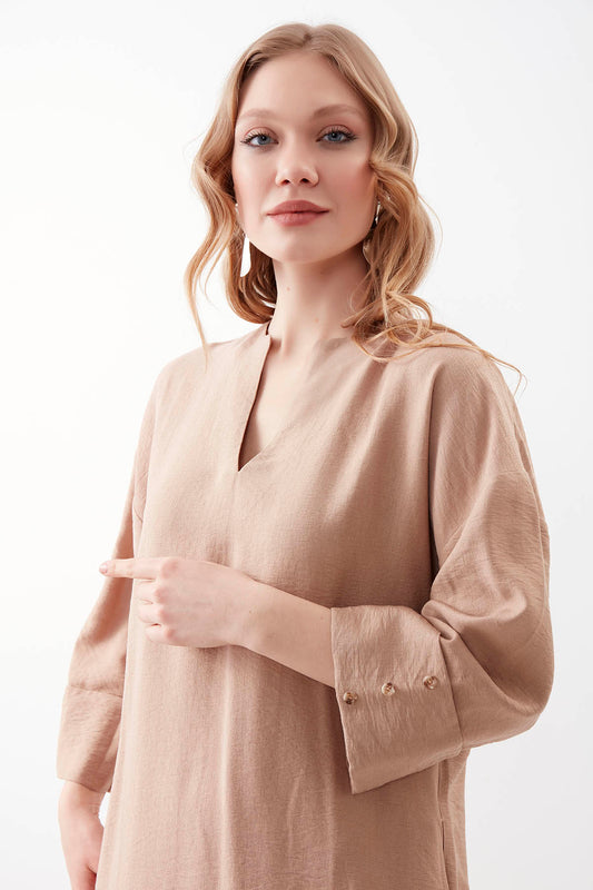 DUAL POCKET SHIRT DRESS WITH TIE-UP
