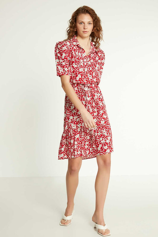 PATTERNED KNITTED DRESS WITH CLOSED COLLAR