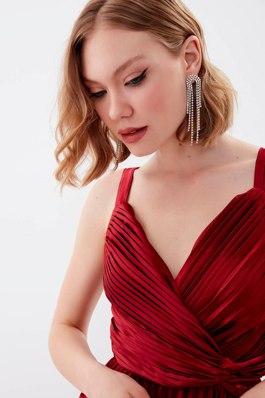 LONG SATIN DRESS WITH DEEP V CLEAVAGE