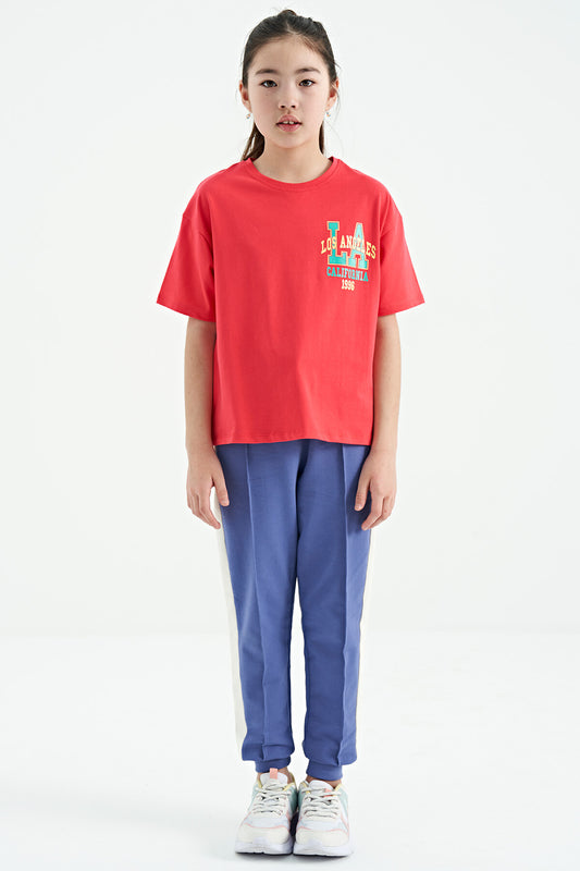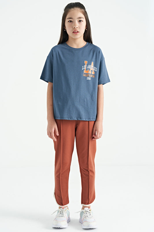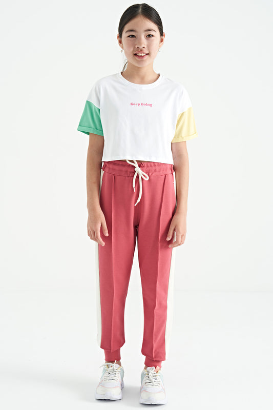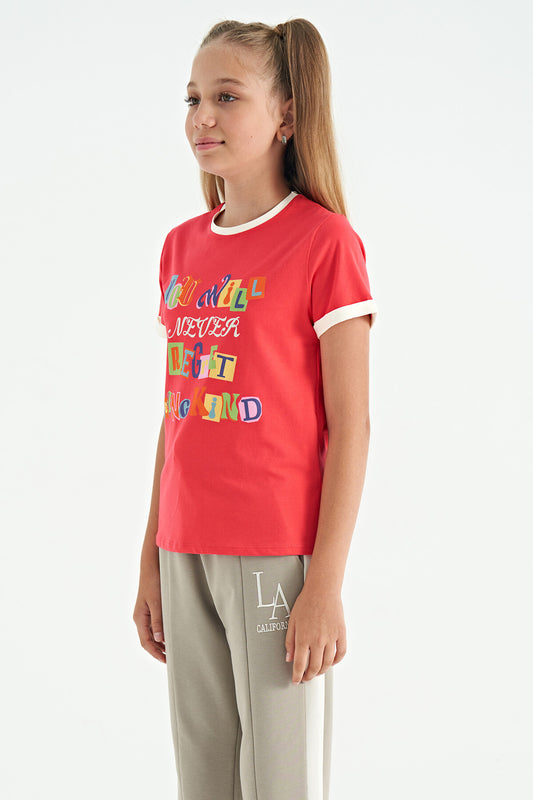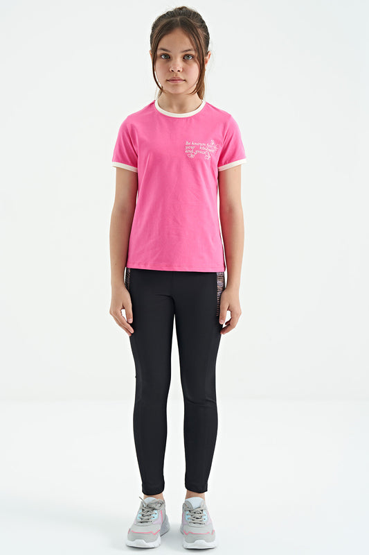 Rose Color Detailed O Collar Comfort Fit Girls T-Shirt - 75109