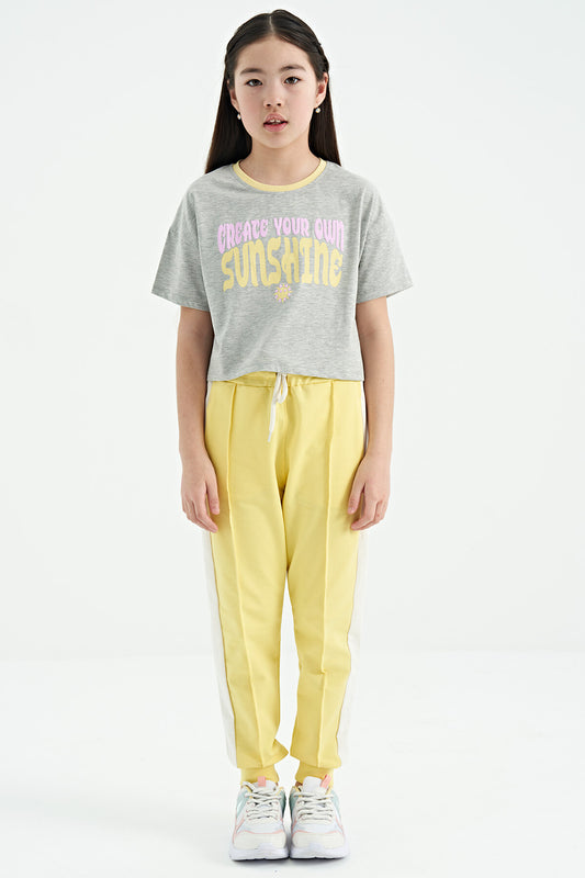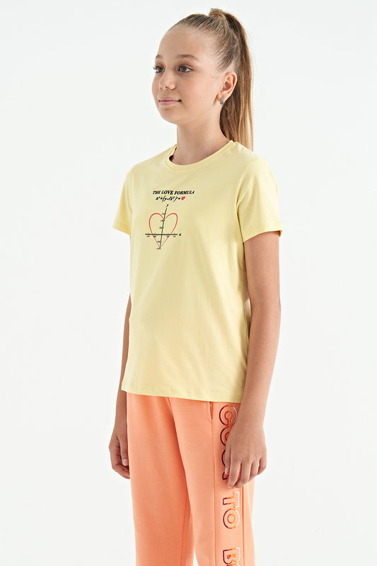 Yellow O Collar Print Detailed Relax Fit Girls' T-Shirt - 75129