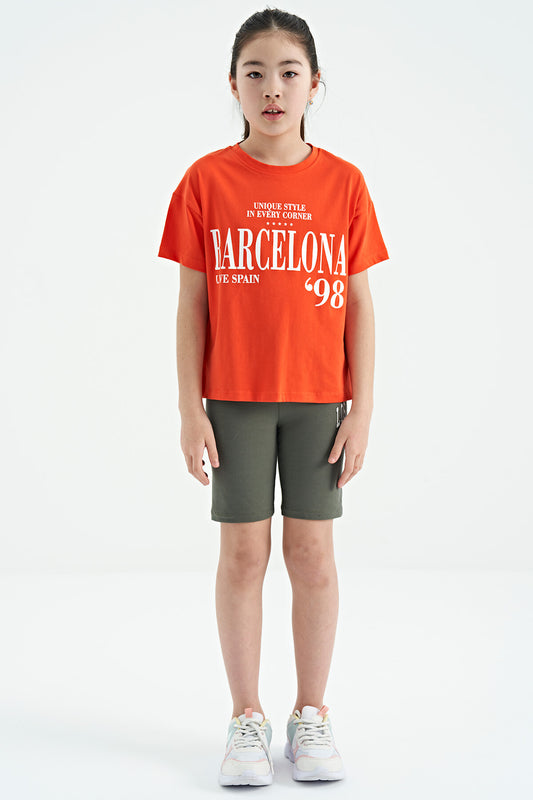 Orange O Collar Printed Drop Shoulder Oversize Girl's T-Shirt - 75115