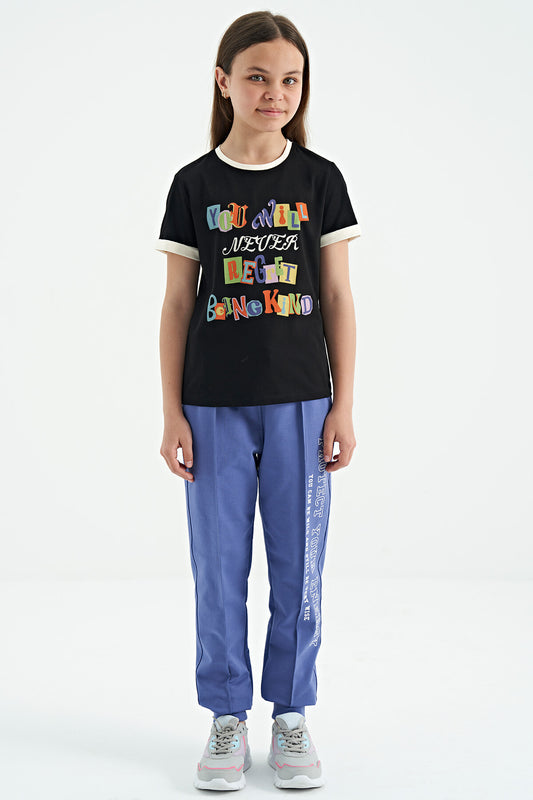 Black Color Detailed O Collar Comfort Fit Girls T-Shirt - 75109