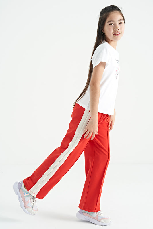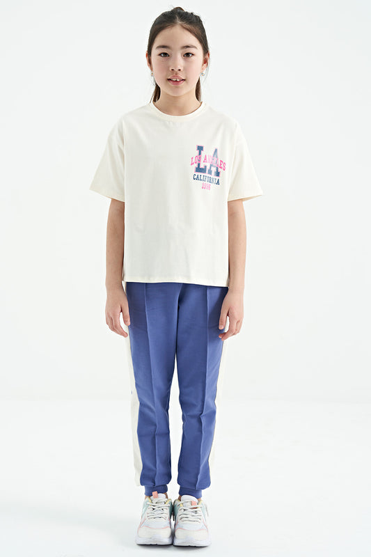 O Collar Printed Detailed Relax Fit Girls' T-Shirt - 75129