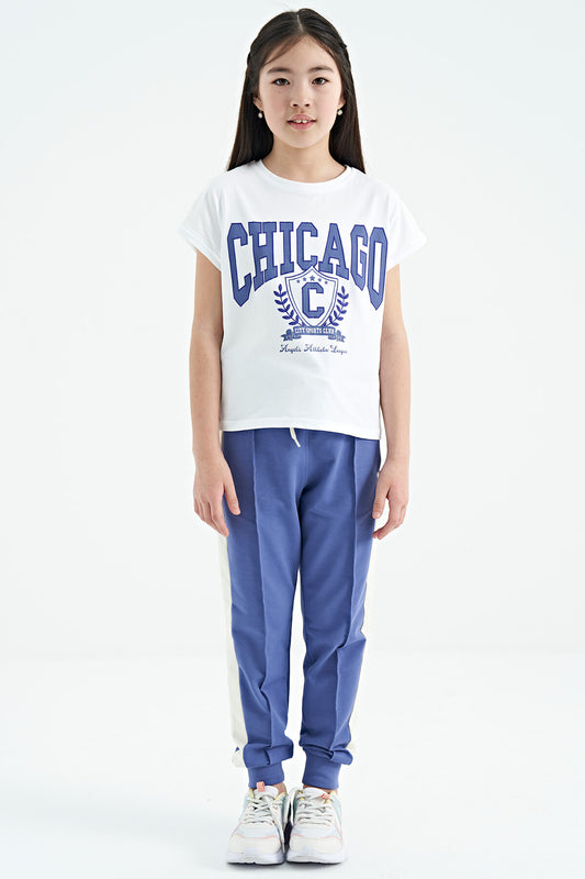 White O Collar Print Detailed Relax Fit Girl's T-Shirt - 75129