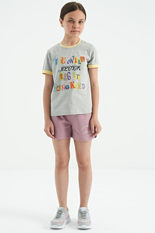 Grey Melange Color Detailed O Collar Comfort Fit Girls T-Shirt - 75109