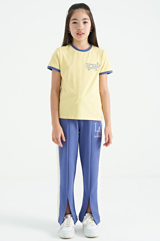 Yellow Minimal Print O Neck Comfort Fit Short Sleeve Girl's T-Shirt - 75110