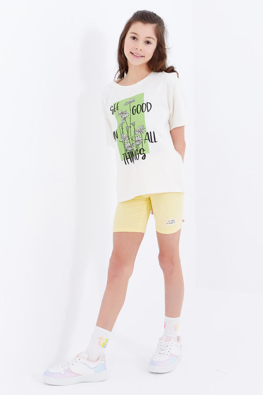 Light Green Oversize Printed O Collar Drop Shoulder Girl's T-Shirt - 75028