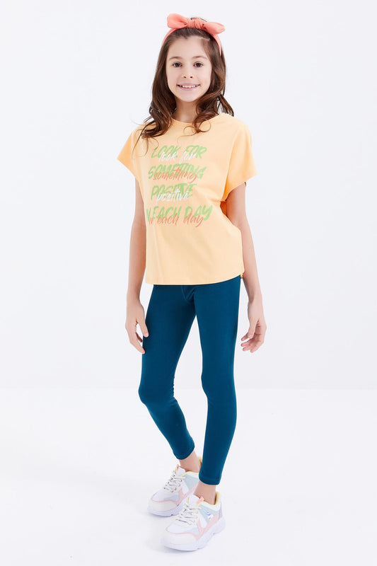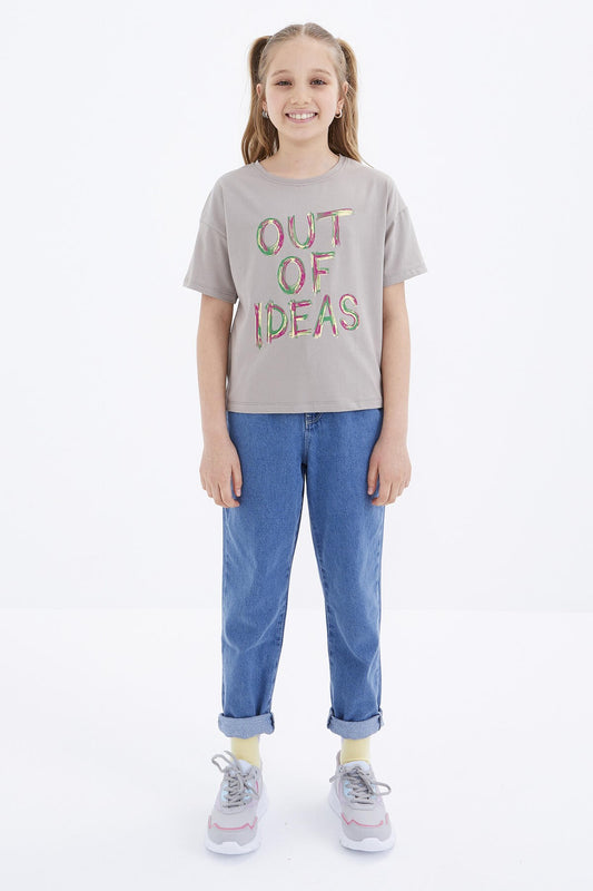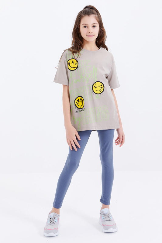 Gri Basic Print Round Neck Comfort Fit Girls T-Shirt - 75041