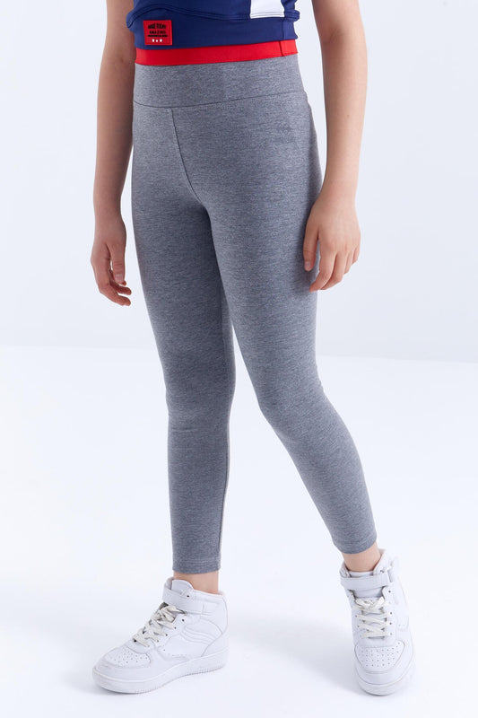 Gray Melange High Waist Straight Leg Girls' Tights - 75047