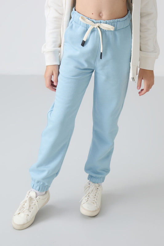 Light Blue Cotton Fleece-Lined Soft Textured Standard Fit Embroidered Girls' Tracksuit Bottom - 75146