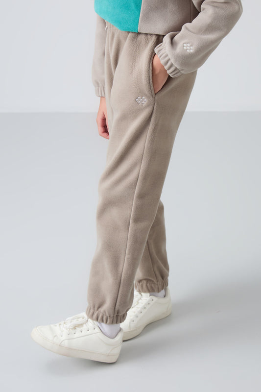 Dark Beige Thick Soft Textured Standard Fit Embroidered Fleece Girls' Tracksuit Bottom - 75155