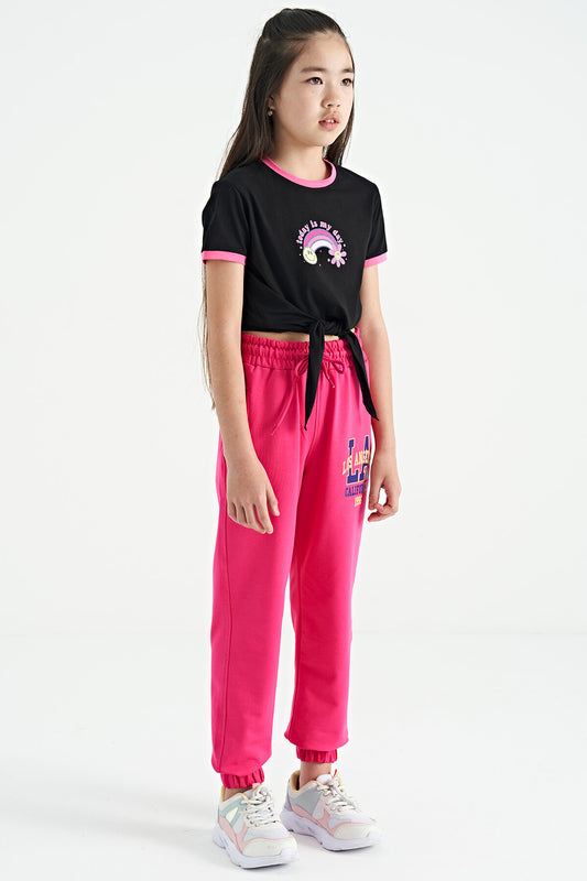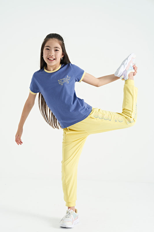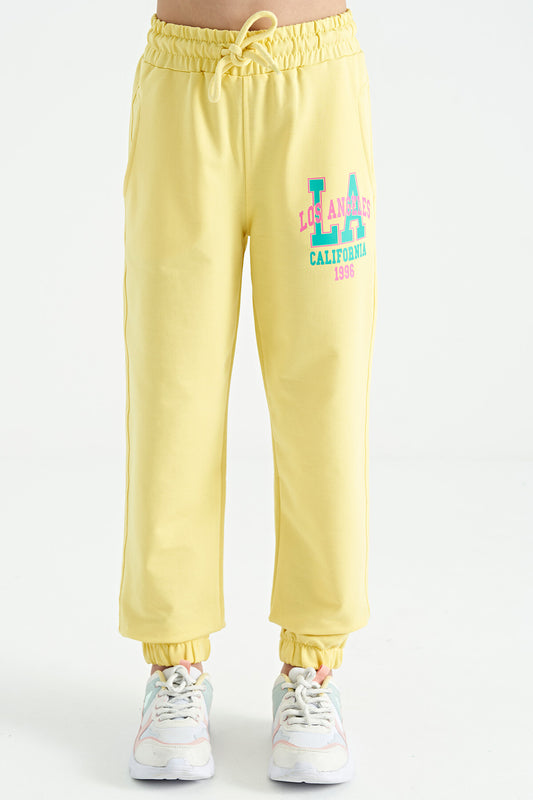 Lemon Side Print Embroidered Laced Standard Fit Jogger Girls' Tracksuit Bottom - 75123