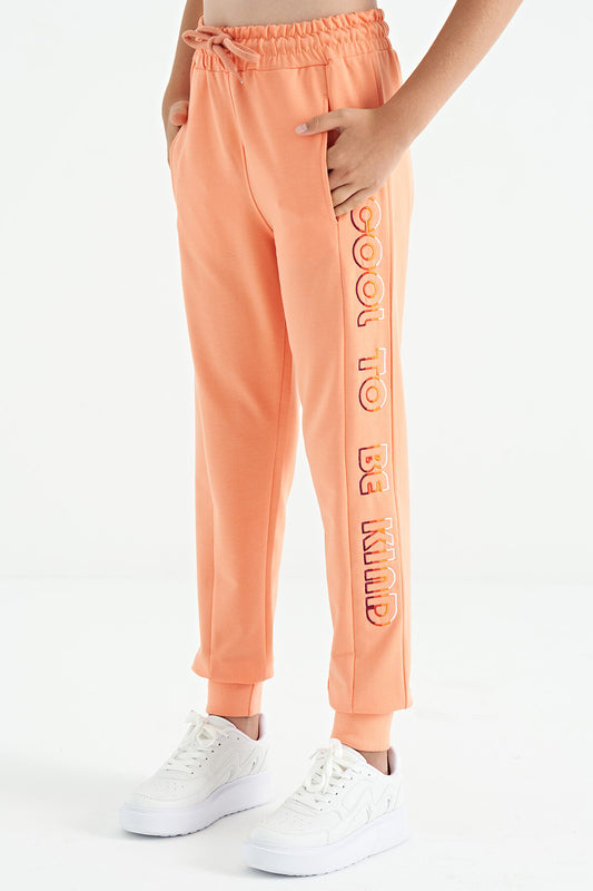 Orange Print Embroidered Standard Cut Jogger Girls' Tracksuit Bottom - 75120