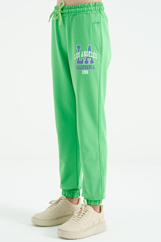 Neon Green Embroidered Lettering Standard Fit Jogger Girls' Tracksuit Bottom - 75120