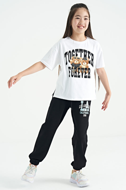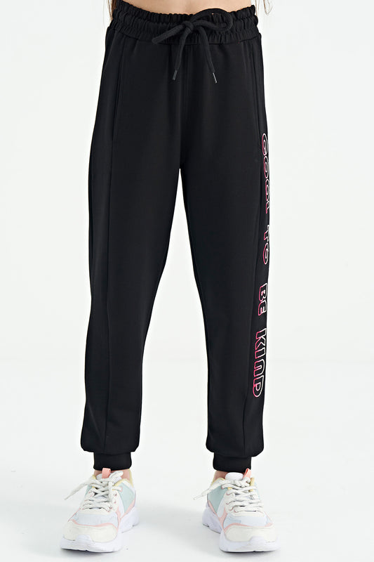 Black Side Embroidered Laced Standard Fit Jogger Girls Tracksuit Bottom - 75123