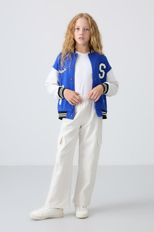 Ecru Cargo Pocket Detailed Wide Leg Girls' Tracksuit Bottom - 75143