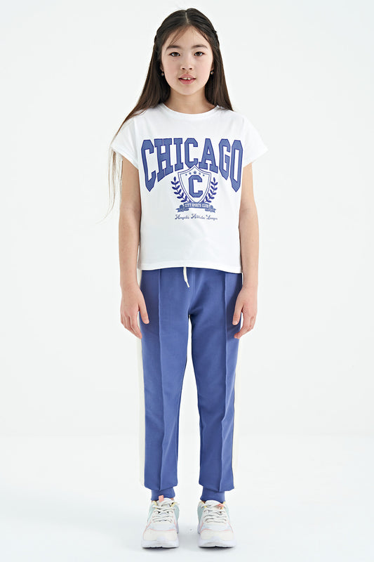 Light Purple Script Embroidered Detailed Laced Relax Fit Girls' Tracksuit Bottom - 75121