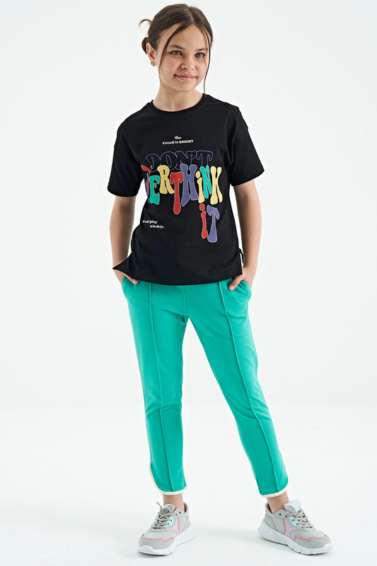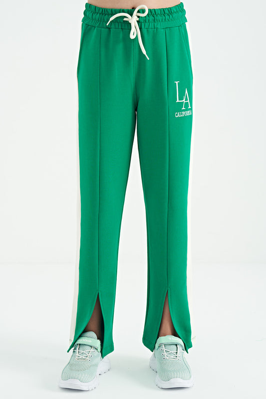 Green Writing Embroidered Detailed Laced Relax Fit Girls Tracksuit Bottom - 75121