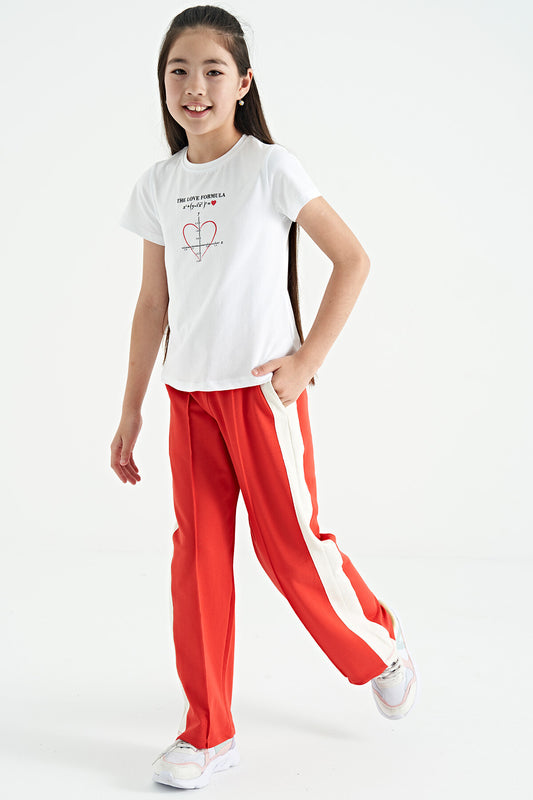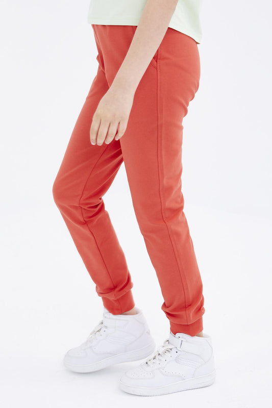 Orange Laced Standard Cut Cuffed Girls' Tracksuit Bottom - 75049