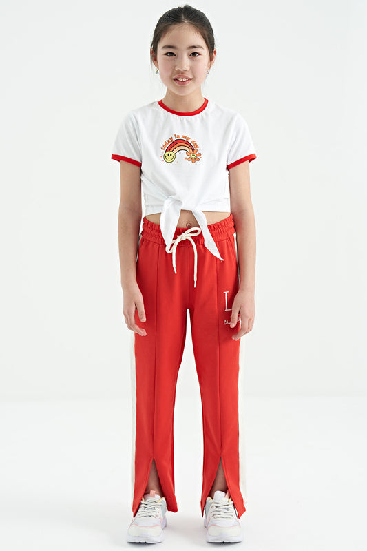 Fiesta Yan Bant Detailed Laced Relax Fit Wide Leg Girls' Tracksuit Bottom - 75119