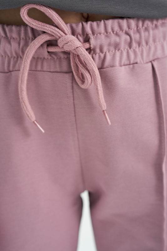 Dried Rose Pink Detailed Laced Front Panel Wide-Legged Girls' Tracksuit Bottom - 75124