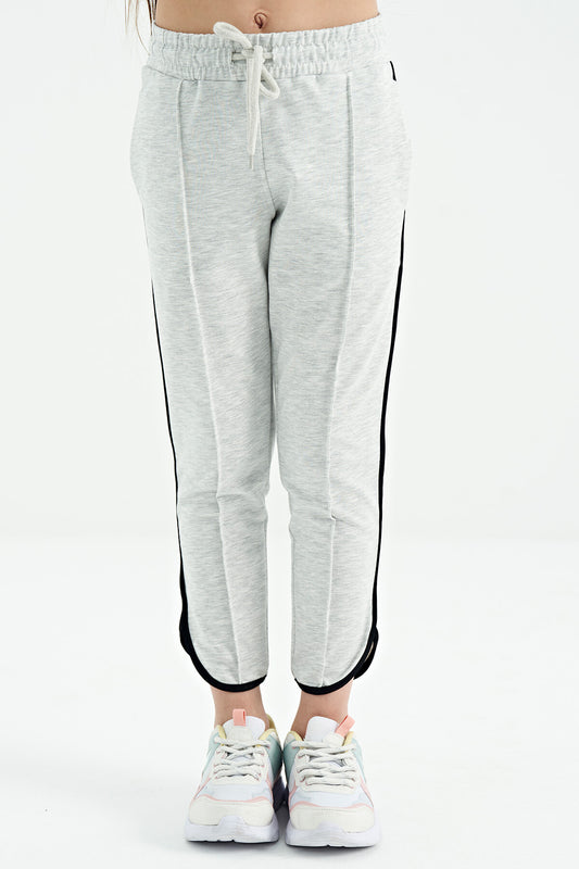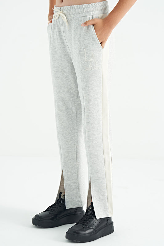 Light Grey Detailed Laced Front Wide-Legged Girls' Tracksuit Bottom - 75124