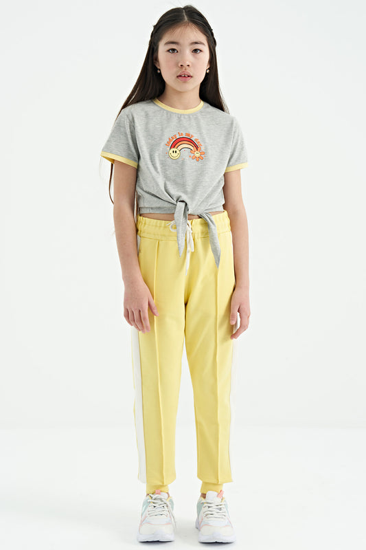 Lemon Side Striped Hidden Zipper Pocket Detailed Jogger Girls' Tracksuit Bottom - 75122