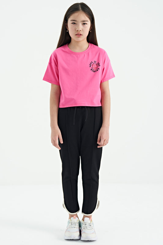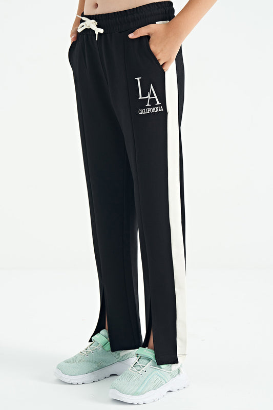 Black Embroidered Detailed Laced Relax Fit Girls Tracksuit Bottom - 75121