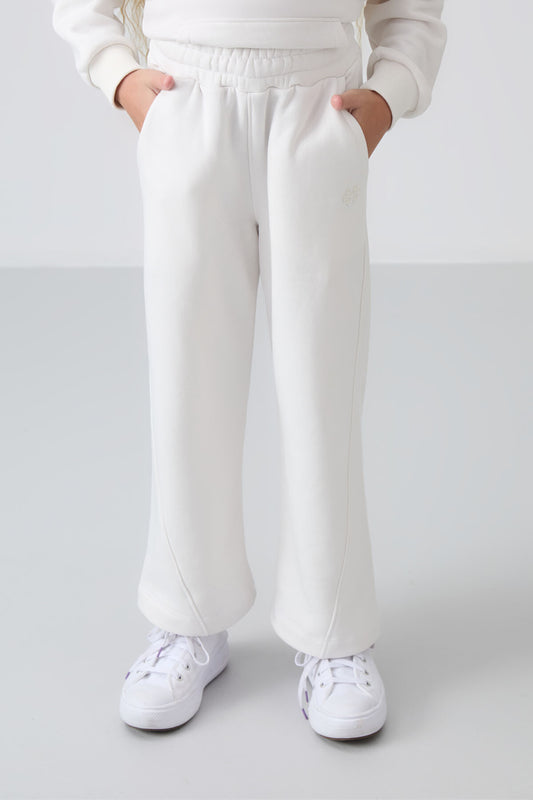 Light Beige Cotton Fleece-Lined Soft Textured Standard Fit Embroidered Girls' Tracksuit Set - 75162