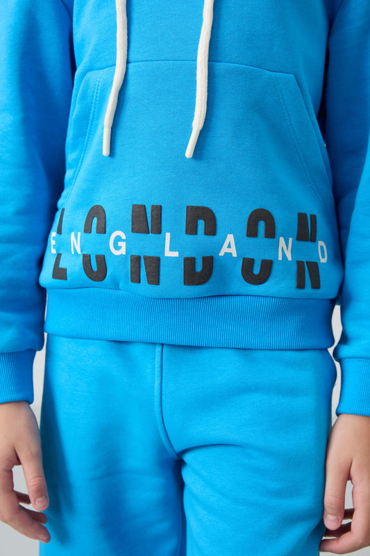 Blue Cotton Fleece-Lined Soft Textured Oversize Printed Girls' Tracksuit Set - 75147