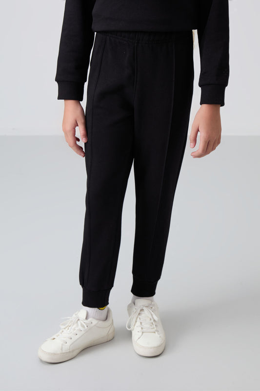 Black Cotton Fleece-Lined Soft Textured Standard Fit Embroidered Girl's Tracksuit Set - 75159