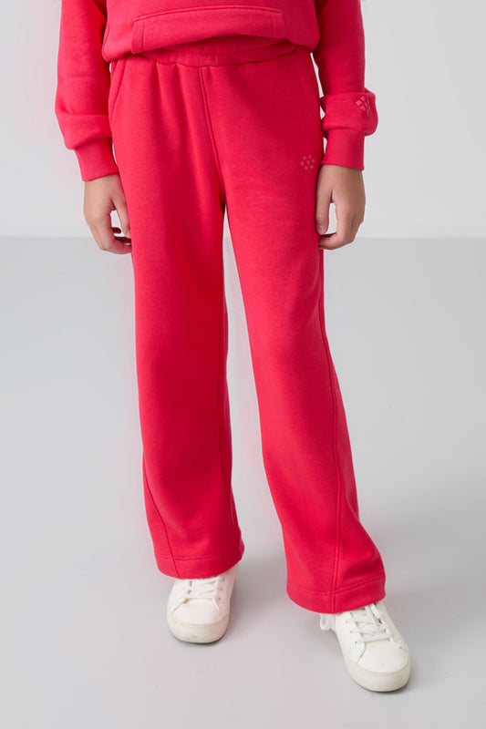 Viva Red Cotton Fleece-Lined Soft Textured Standard Fit Embroidered Girls' Tracksuit Set - 75162