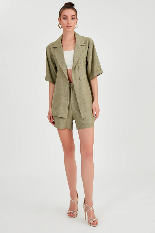 LONG COLLAR DETAILED LOW SHOULDER JACKET