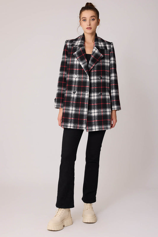 PLAID PATTERN FRONT BUTTON JACKET