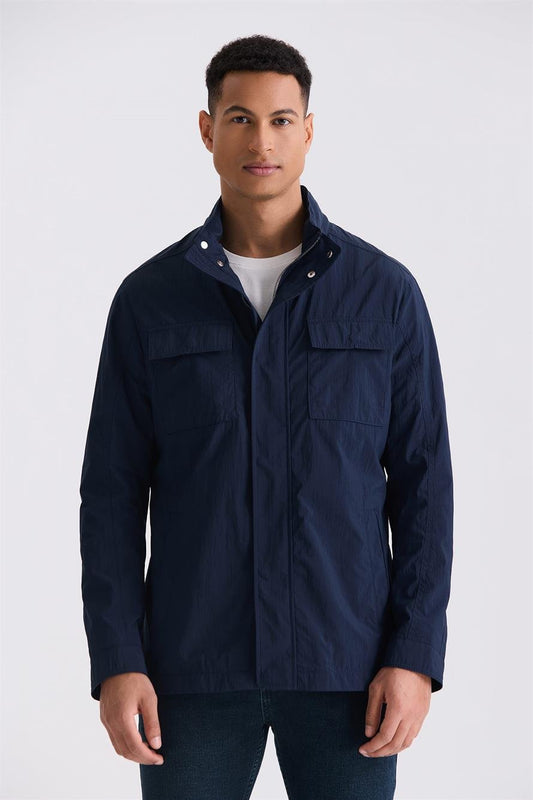 Navy Comfort Fit Shirt Collar Jacket With Concealed Buttons