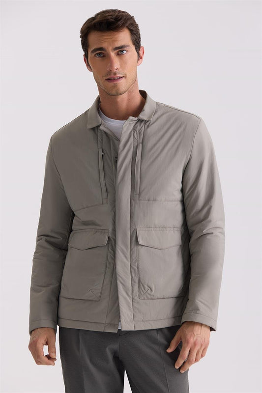Stone Comfort Fit Shirt Collar And Seasonal Jacket