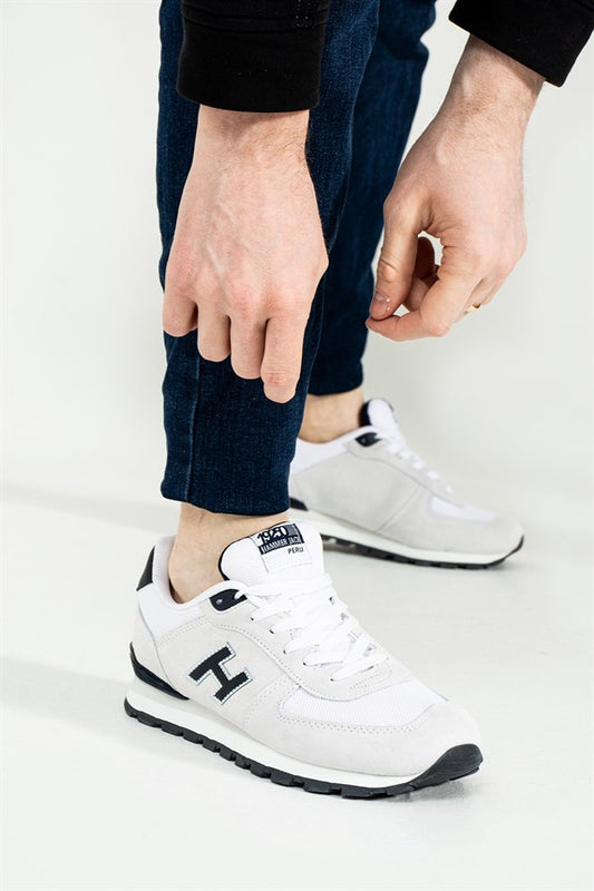 Peruvian True Leather Dirty White And Navy Men's Sports Shoes