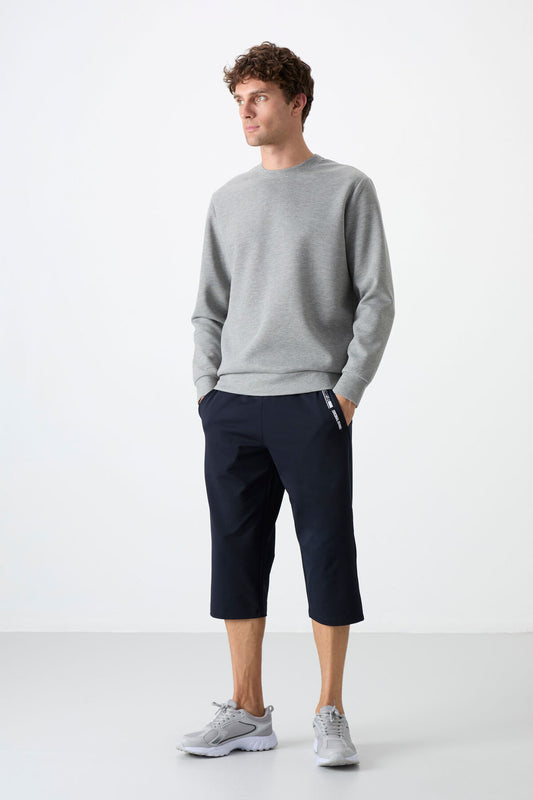 Grey Melange Front Pocket Detailed Standard Fit Classic Hem Men's Capri - 83092