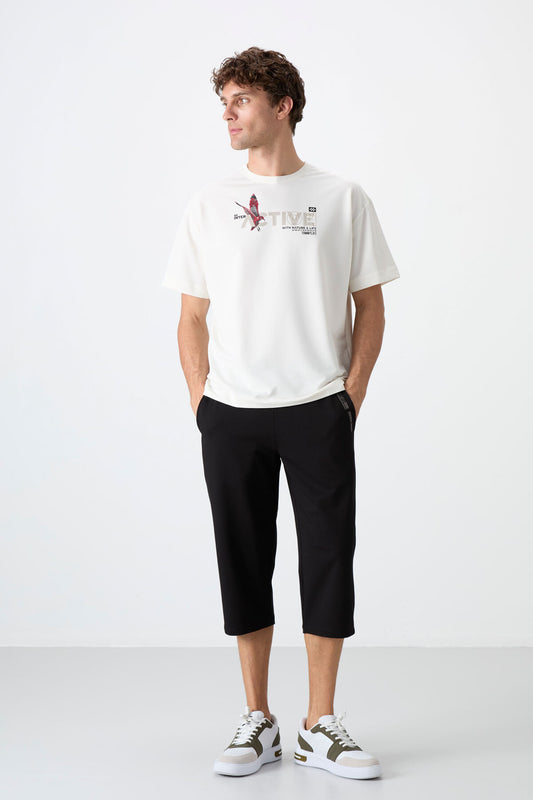 Black Front Pocket Detailed Standard Fit Classic Hem Men's Capri - 83092
