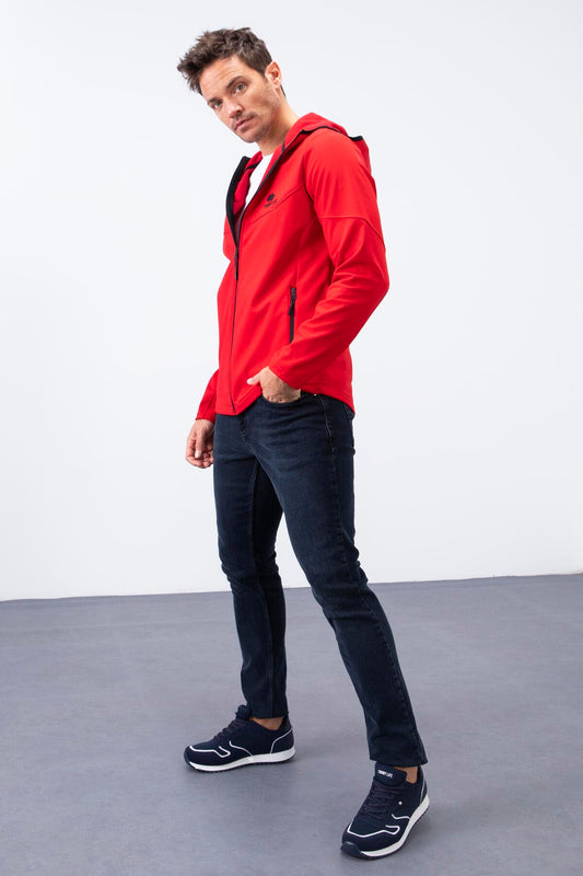 Red Zippered Hooded Water and Windproof Softshell Men's Jacket - 88051