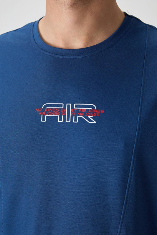 Navy Blue Textured Thick Surface Cotton Oversize Fit Printed Men's T-Shirt - 88368