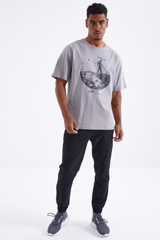Gray Printed O Collar Men's Oversize T-Shirt - 88098